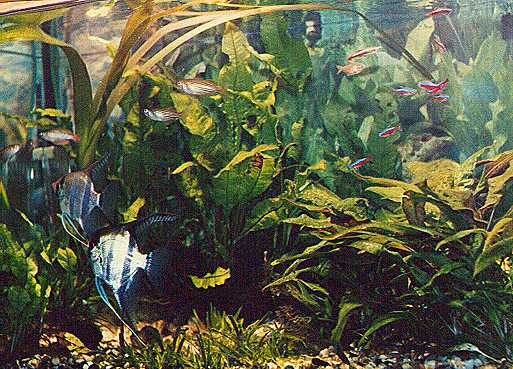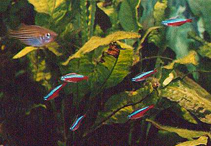 Teilansicht, Scalare, rote Neon, Zwergregenbogenfisch